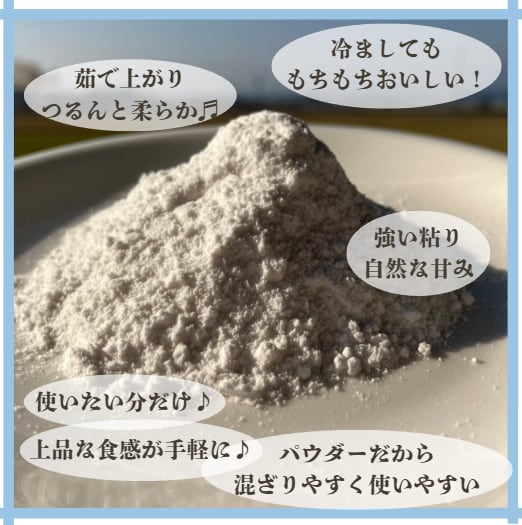 パウダーなので、白玉団子はもちろん、和菓子、焼き菓子、お料理にも幅広くお使いいただけます。